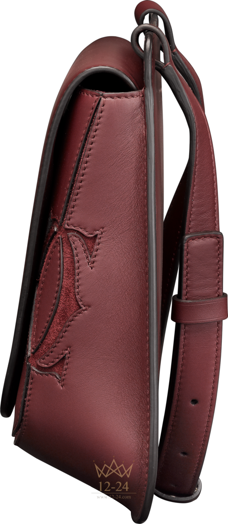 Ограниченная серия. Сумка из телячьей кожи бордового цвета, позолоченная отделка. Откидной клапан на магните. Снаружи: логотип из бархата в виде двойной буквы С. Внутри: подкладка из микрофибры бордового цвета, 1 отделение на молнии и 1 плоское отделение из кожи бордового цвета. Внутри надпись Cartier золотистого цвета, нанесенная методом горячего тиснения. Размеры: 22,6 x 29,4 x 6,4 см. Ремень регулируемой длины для ношения на плече.