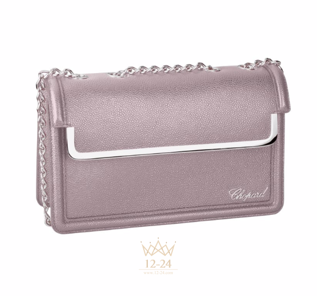 Женственность этой сумки в винтажном стиле подчеркивает нежный светло-серый цвет искусно выделанной кожи, на котором эффектно выделяются цепочка и элементы фурнитуры, сияющие блеском благородного металла. Грациозно покачиваясь на плече, сумка Vintage служит олицетворением беззаботного и жизнерадостного стиля Chopard.