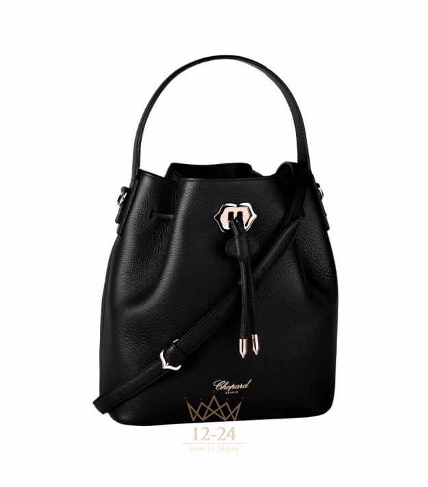 Сумка из чувственно мягкой черной кожи, затягивающаяся изящным шнурком с металлическими наконечниками, предлагает абсолютно современный способ ношения самых необходимых вещей. Эту женственную модель, полностью выполненную из кожи как снаружи, так и изнутри, украшает фурнитура, дизайн которой навеян знаменитым мотивом IMPERIALE. С двумя съемными ремнями, которые можно менять по настроению, для ношения на плече.