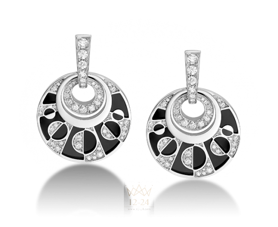Серьги Intarsio, белое золото 18 карат, черный оникс, бриллиантовое паве.