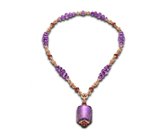 Колье MVSA, розовое золото 18 карат, аметист, бусины из рубеллита, бриллиантовое паве.