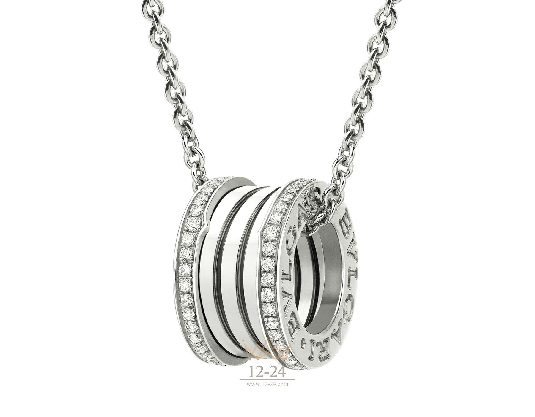Подвеска B.zero1 на цепочке, белое золото 18 карат, бриллиантовое паве по краям. Длина 38-45 см.
