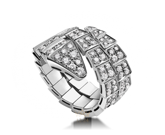 Кольцо Serpenti, белое золото 18 карат, сплошное бриллиантовое паве.