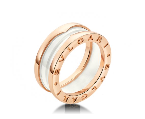 Кольцо B.zero1, розовое золото 18 карат, белая керамика.