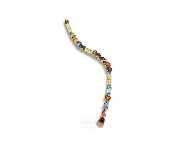 Браслет Color Collection, желтое золото 18 карат, цветные камни, бриллиантовое паве.