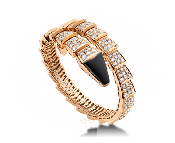 Браслет Serpenti, розовое золото 18 карат, черный оникс, сплошное бриллиантовое паве.