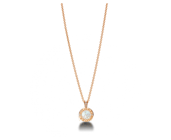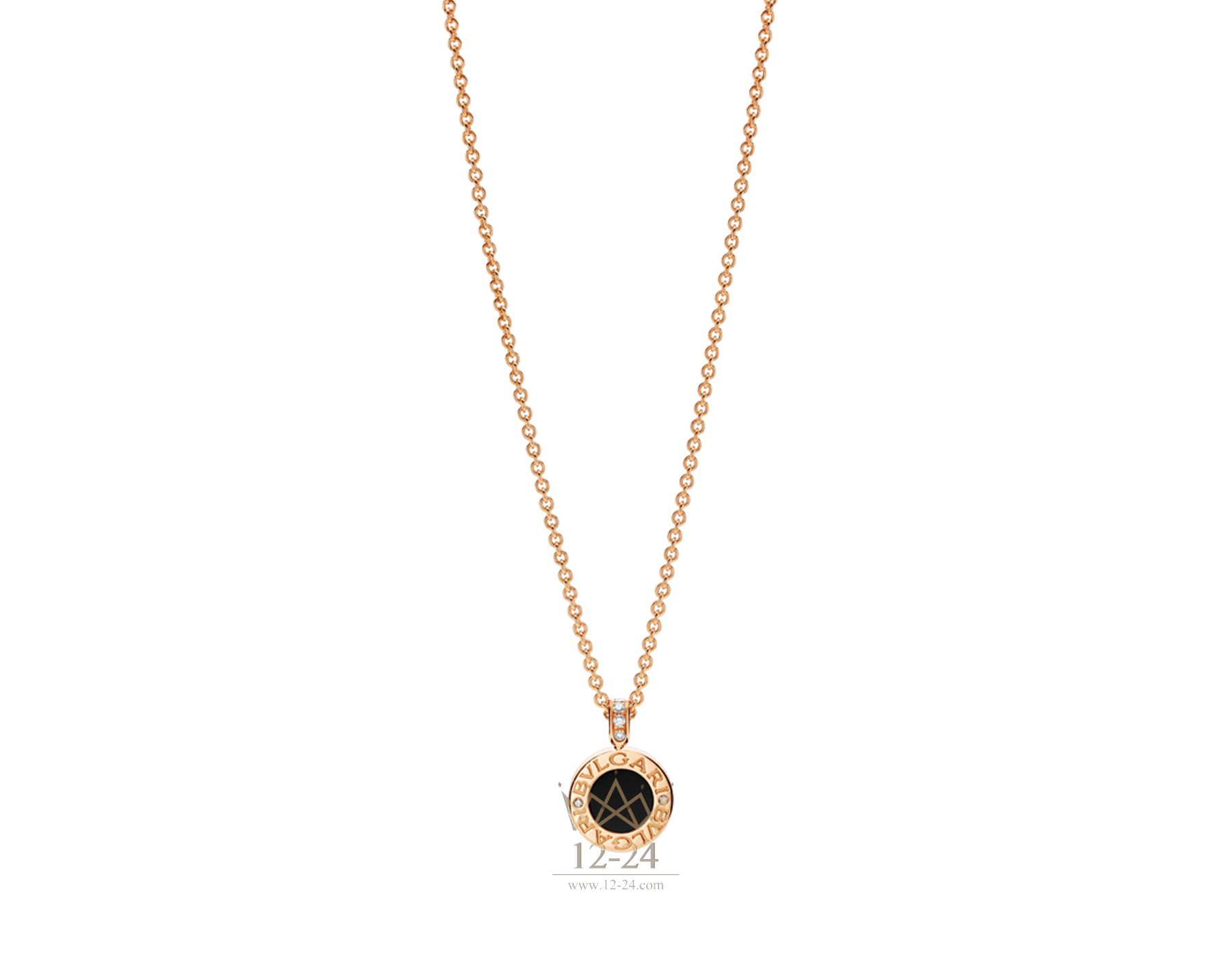 Подвеска BVLGARI BVLGARI, розовое золото 18 карат, перламутр, оникс, бриллиантовое паве, на цепочке. Длина 39-44,5 см.