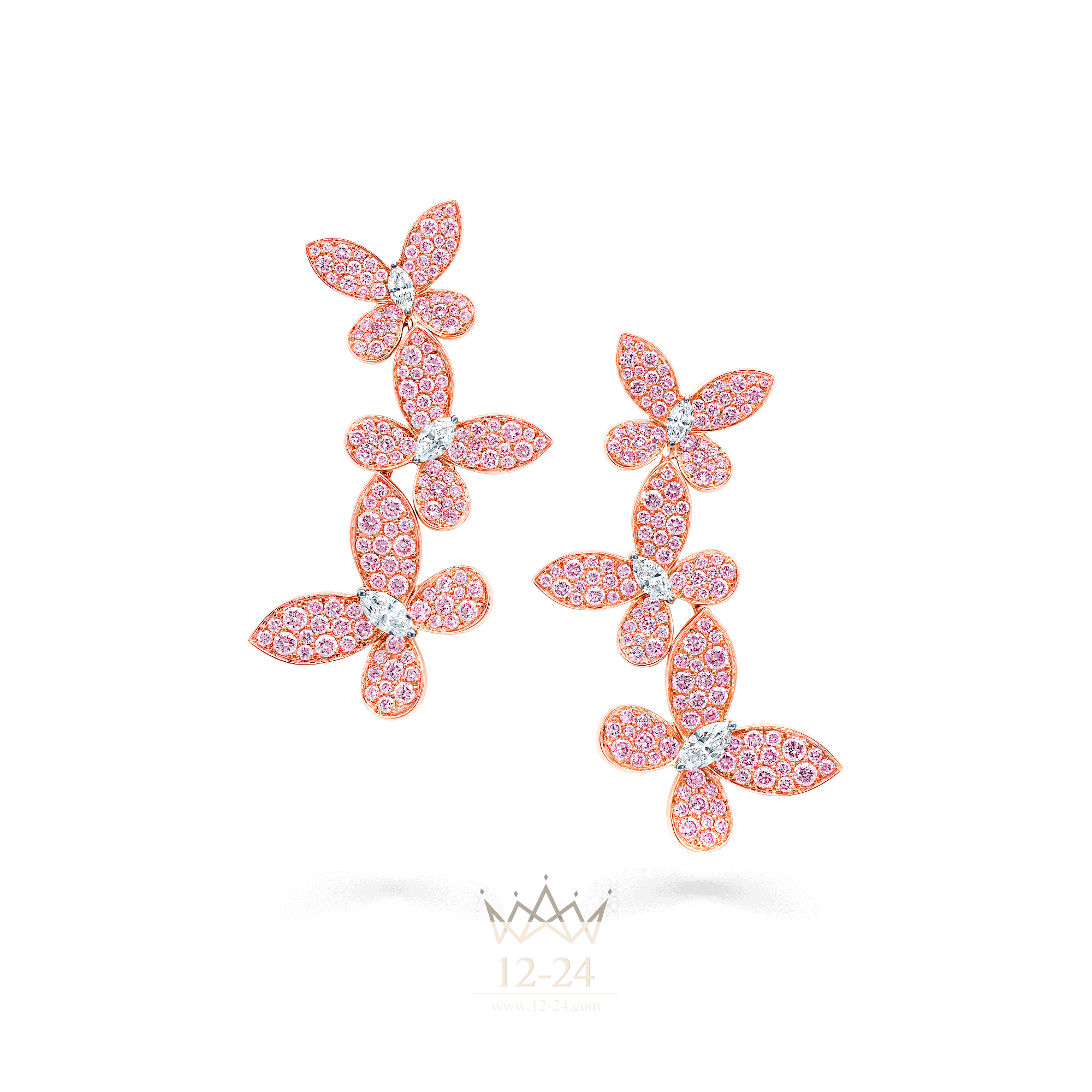 Серьги Graff Triple Pave Butterfly Earrings Pink and White Diamond RGE959
