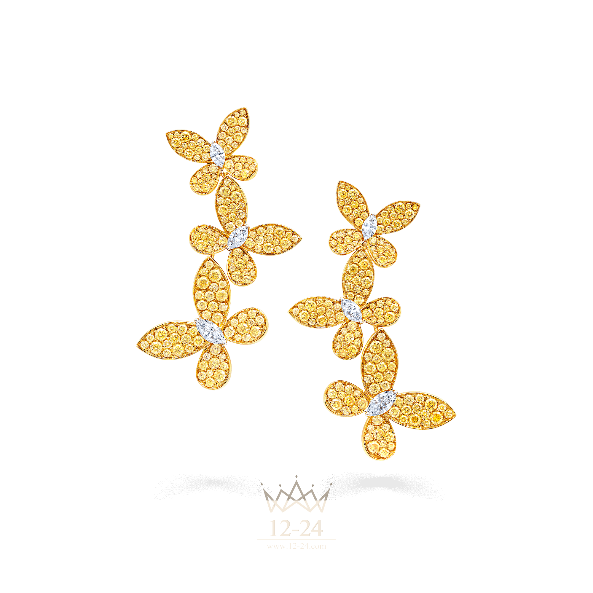 Серьги Graff Triple Pave Butterfly Earrings Yellow and White Diamond RGE960