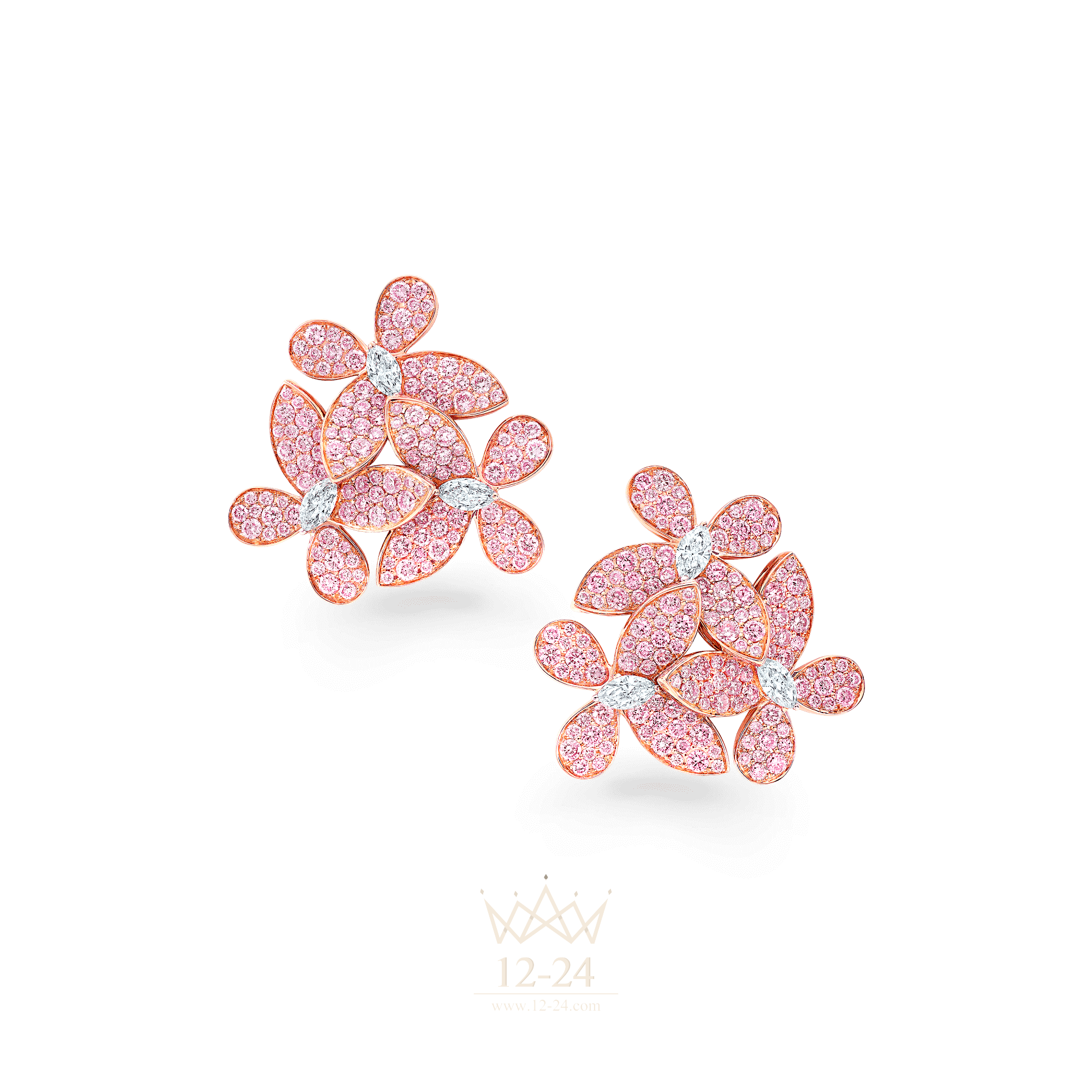 Серьги Graff Triple Pave Butterfly Cluster Earrings Pink and White Diamond RGE961