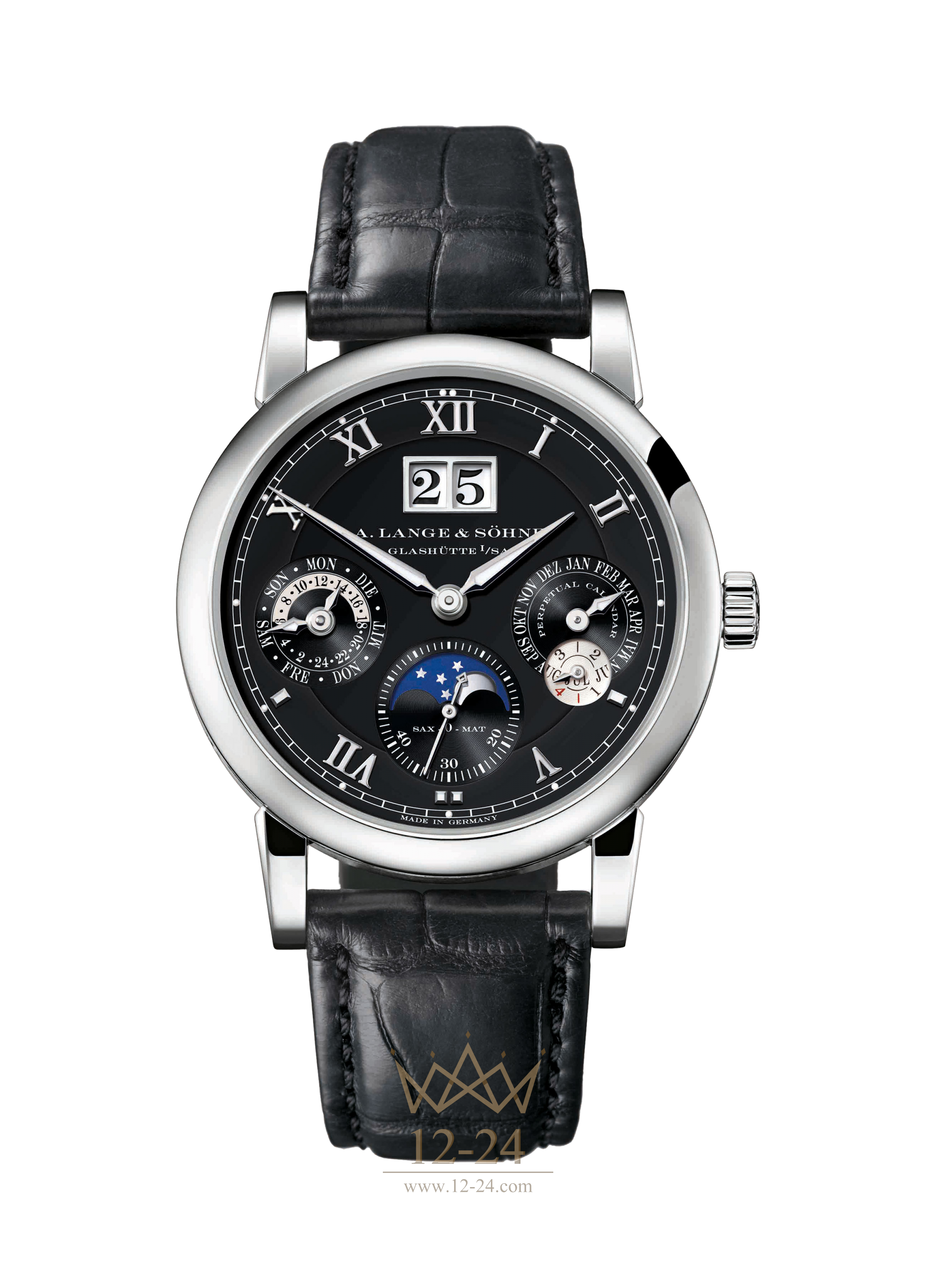 LANGEMATIKPERPETUAL — первые механические наручные часы, в которых вечный календарь оснащён большим указателем даты Lange. Механизм вечного календаря автоматически показывает верные дату, день недели и месяц, учитывая различные длительности месяцев, включая вариации високосного цикла.