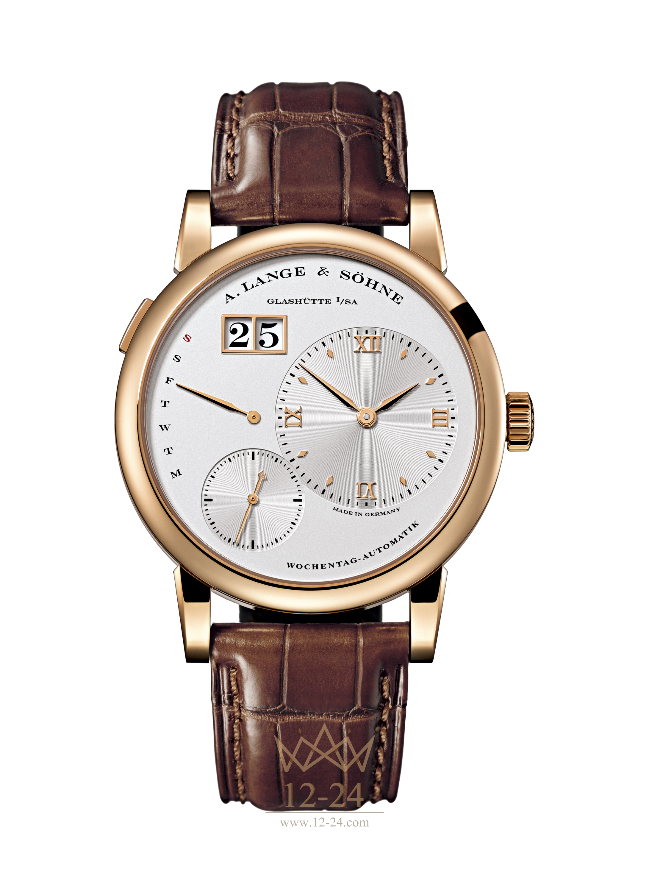 Часы LANGE 1 DAYMATIC — первая модель в коллекции LANGE 1, оснащённая автоматическим механизмом. Как и у LANGE 1, циферблат этих часов имеет характерную несимметричную структуру с непересекающимися указателями и легендарным большим указателем даты. Однако все указатели этих часов расположены в зеркальном отражении относительно того, как они размещены в LANGE 1, кроме того вместо указателя запаса хода установлен указатель дня недели.