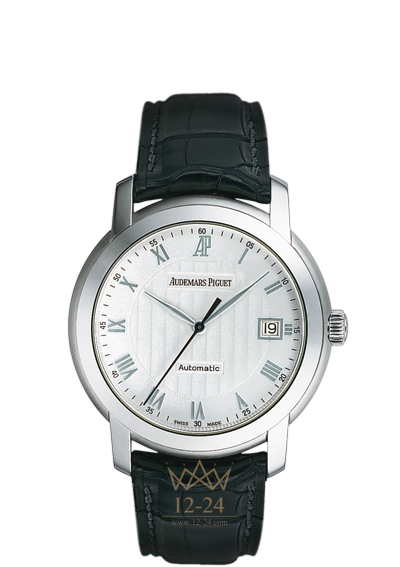 Часы Selfwinding с автоподзаводом, отображением даты и центральной секундной стрелкой, корпус из белого золота, сапфировые стекло и задняя крышка с анти-бликовым покрытием, циферблат с декоративным шаблоном «Côtes de Genève», ремешок крокодил с золотой застежкой.