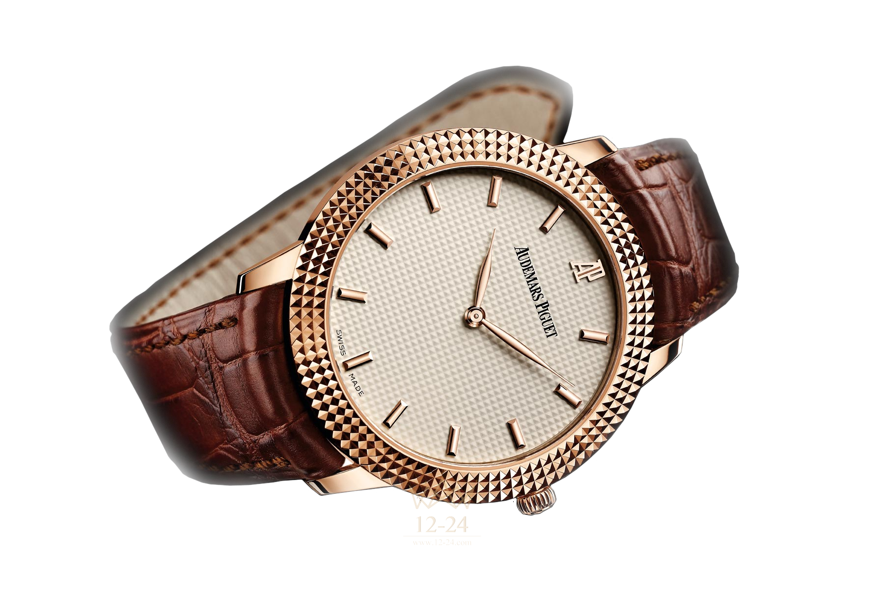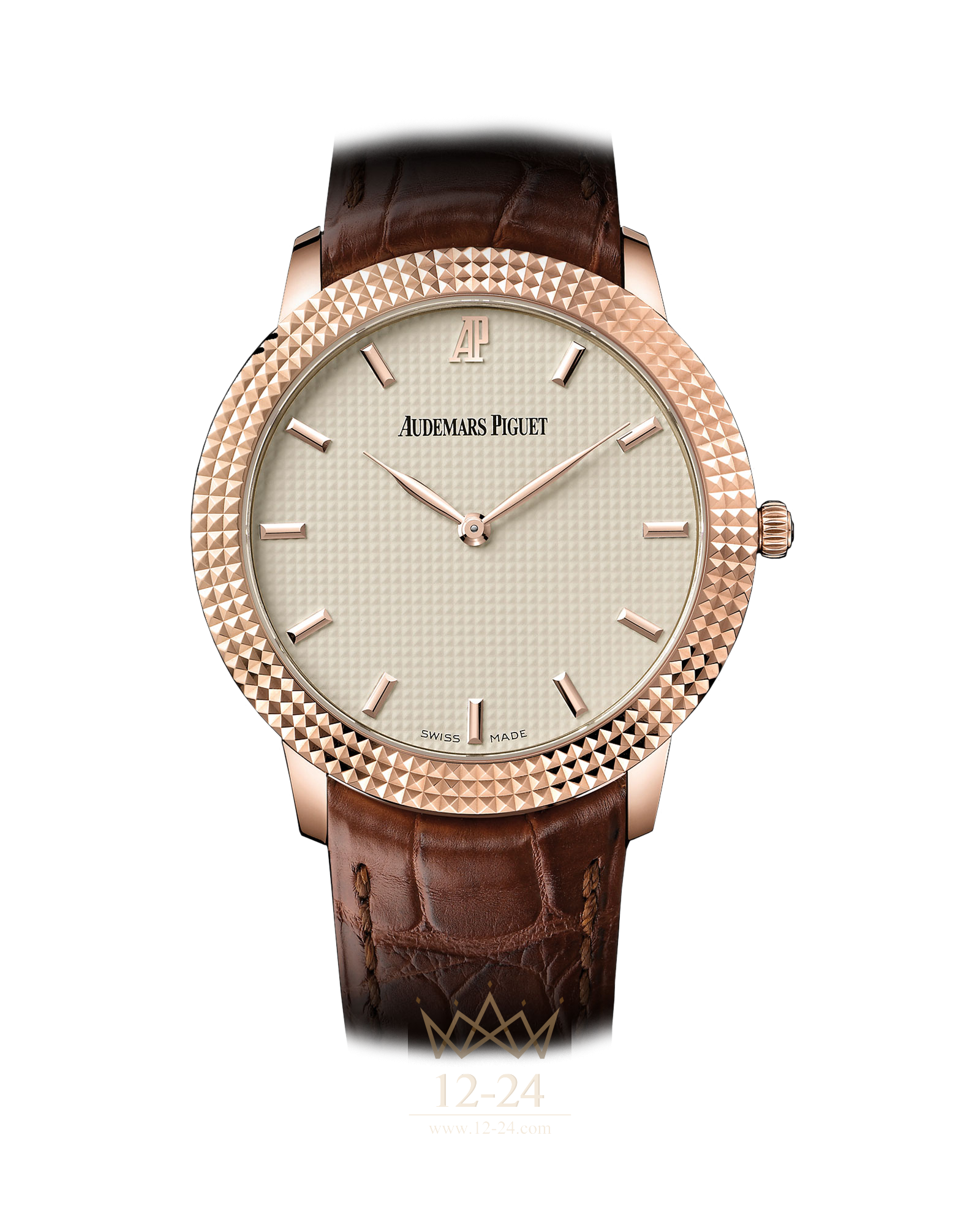 Часы CLOUS DE PARIS с ручным заводом. Корпус из розового золота, полированный безель с «Clous де Пари», сапфировые стекло и задняя крышка с анти-бликовым покрытием, циферблат слоновая кость в стиле «Clous де Пари», часовые метки выполнены из золота, коричневый ремешок ручной работы из кожи аллигатора с золотой застежкой.