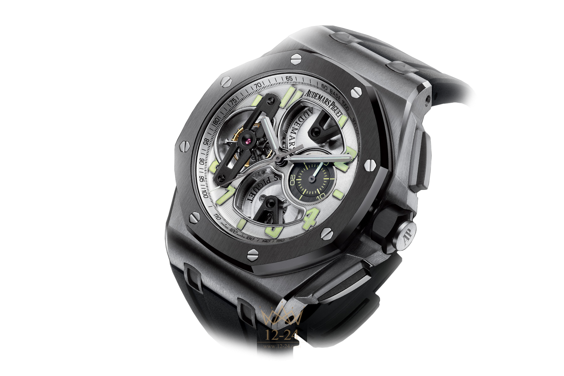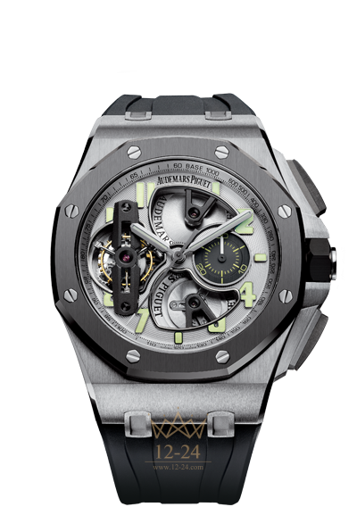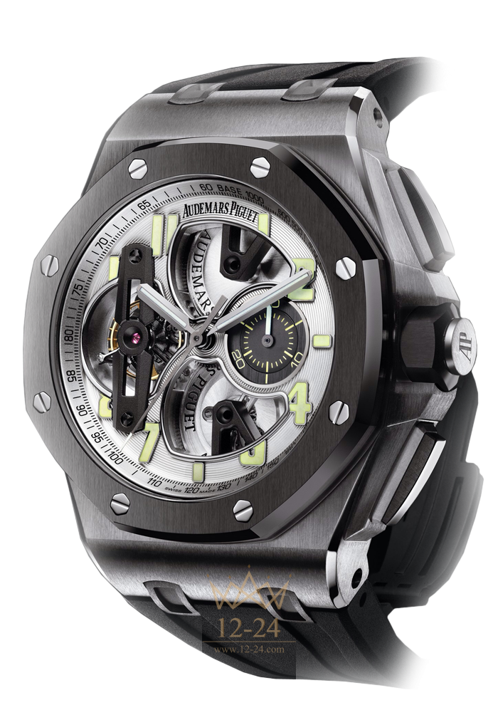 Часы TOURBILLON CHRONOGRAPH это ограниченное издание часть коллекционера, эти часы были разработаны для сложных задач и свежих горизонтов, они предназначены для запястья человека не принимающего никаких ограничений. Титановый корпус, сапфировое стекло и задняя крышка с анти-бликовым покрытием, открытый посеребренный циферблат, черный каучуковый ремешок с титановой пряжкой.