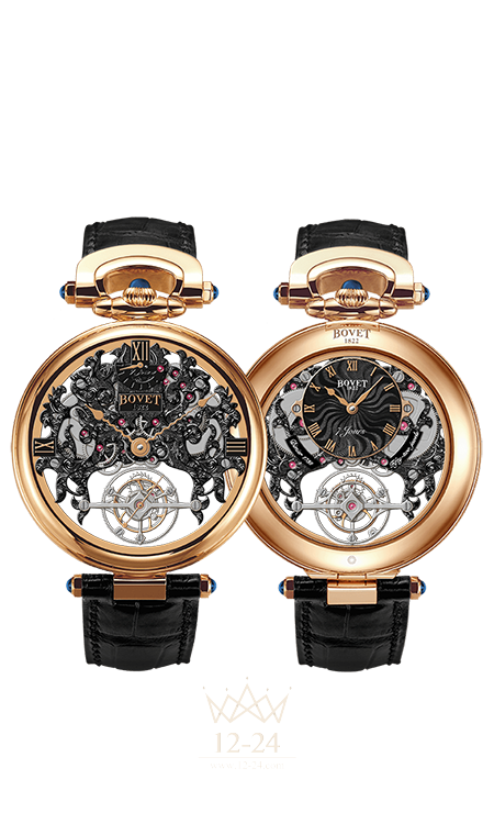 ЦИФЕРБЛАТ — скелетонирование и ручная гравировка Fleurisanne на лицевой стороне, черное гильоше на обратной стороне.