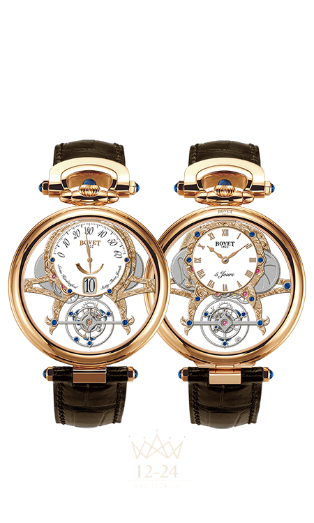 ФУНКЦИИ — «прыгающая» часовая стрелка, ретроградный индикатор минут, секундная стрелка на турбийоне, реверсивные стрелки, 5-дневный запас хода, коаксиальная индикация.