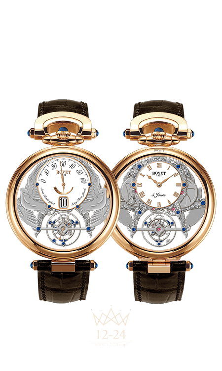 ФУНКЦИИ — «прыгающая» часовая стрелка, ретроградный индикатор минут, секундная стрелка на турбийоне, реверсивные стрелки, 5-дневный запас хода, коаксиальная индикация.