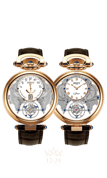 ФУНКЦИИ — «прыгающая» часовая стрелка, ретроградный индикатор минут, секундная стрелка на турбийоне, реверсивные стрелки, 5-дневный запас хода, коаксиальная индикация.