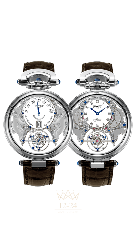 ФУНКЦИИ — «прыгающая» часовая стрелка, ретроградный индикатор минут, секундная стрелка на турбийоне, реверсивные стрелки, 5-дневный запас хода, коаксиальная индикация.