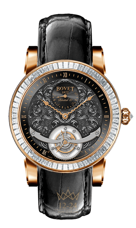 ЦИФЕРБЛАТ — черный, ручная гравировка «Fleurisanne», накладные римские цифры.