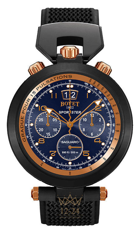 МАТЕРИАЛ — нержавеющая сталь с черным DLC-покрытием, кнопки и заводная головка из 18-каратного розового золота.