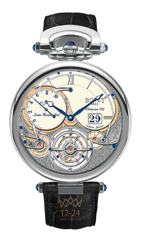 ПАТЕНТЫ — запатентованный двусторонний турбийон, запатентованная сферическая система завода, запатентованное объёмное зубчатое сцепление для многократной передачи.