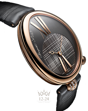 Циферблат: из посеребренного и антрацитового цвета 18-каратного золота, гильошированный. Проставлены индивидуальный номер и подпись «Breguet». Накладные и криволинейные римские цифры из розового золота в положении «на 12 часов» и «на 6 часов». Стрелки «Breguet» с открытым наконечником из розового золота.