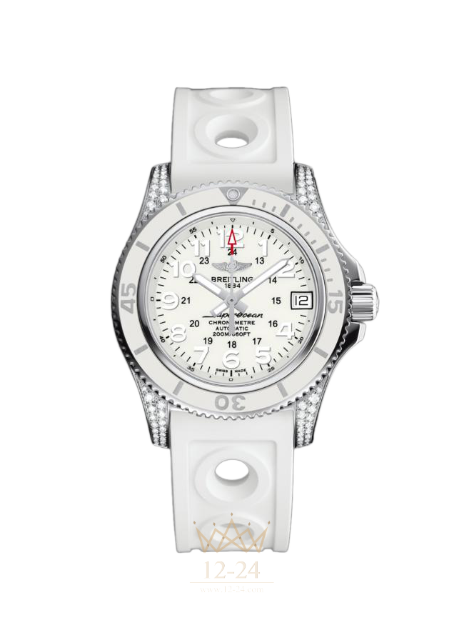 Breitling переосмысливает свои часы для дайверов Superocean, выпустив модель диаметром 36 мм, которая должна удобно садиться на любое запястье. Ультра-четкий циферблат соединяет в себе черный фон с крупными белыми люминесцентными цифрами и увеличенными стрелками, которые прекрасно видны в темноте, царящей на больших глубинах. Вращающийся в одном направлении безель с каучуковыми накладками подчеркивает техничный, спортивный и оригинальный внешний вид. Эта модель также доступна в совершенно женской белой версии.