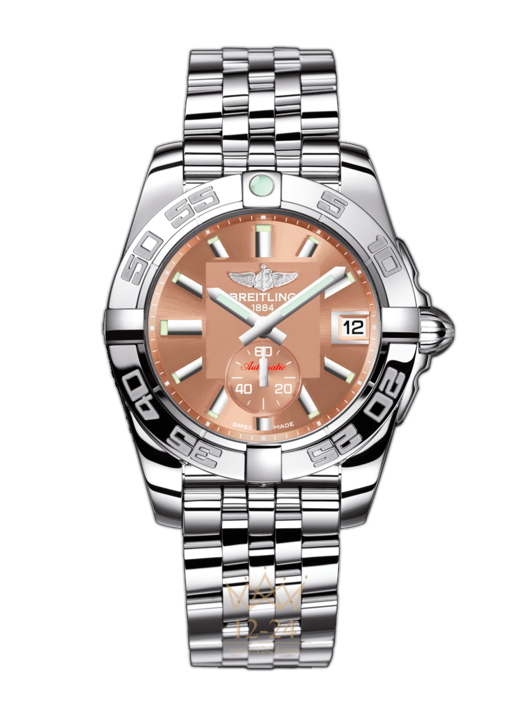 На безеле расположены цифры особой формы, которые выгравированы на полированной поверхности. Изысканный циферблат несомненный оттенок гламурности. Отличающиеся сочетанием утонченной элегантности и безупречной работы механизма, часы «Galactic 36 Automatic» являют собой новую женскую звезду, на которой горделиво красуется автограф компании Breitling.