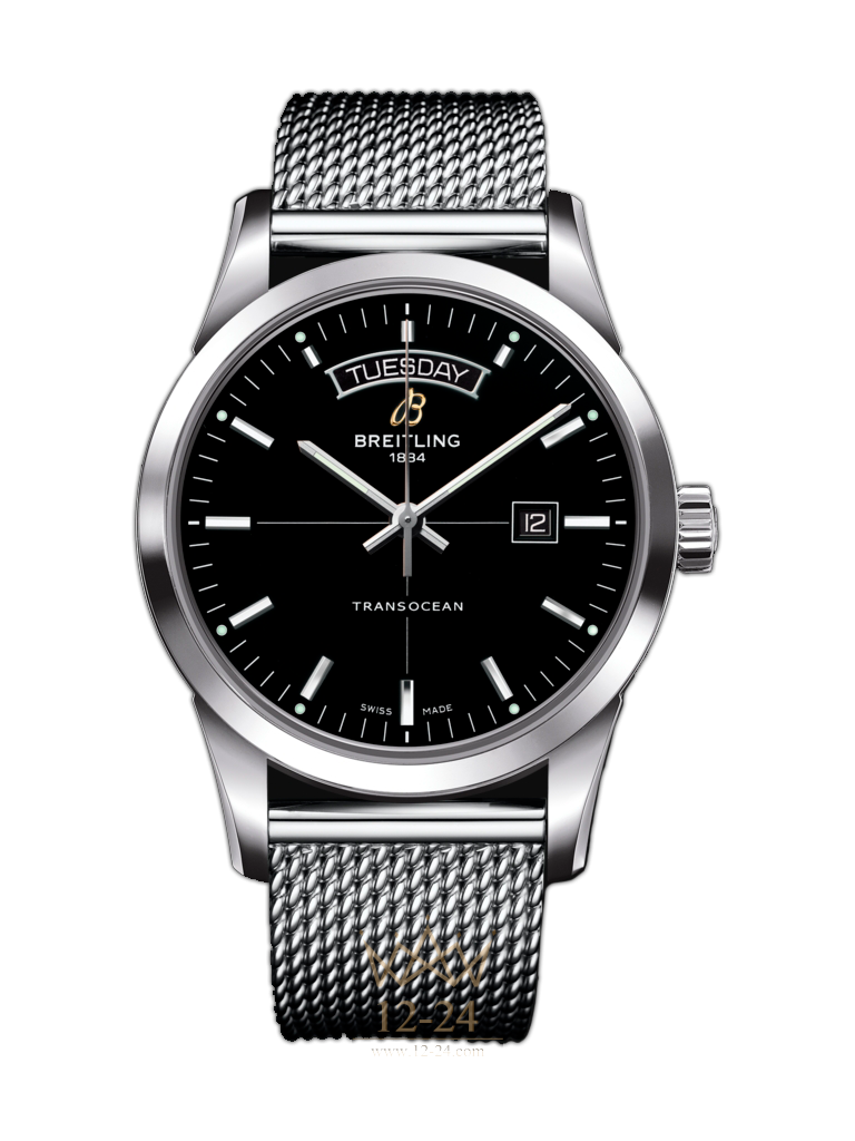 Breitling Transocean Day & Date – великолепная классика с лаконичным дизайном. Часы оформлены в строгих оттенках серого и черного. Корпус размером 43 мм выполнен из стали. Циферблат оснащен удобными часовыми метками и стрелками с люминесцентным покрытием. В положении двенадцать часов расположен индикатор дня недели, в положении три часа – окошко даты. Механизм защищен сапфировым стеклом. Водонепроницаемость модели – 100 метров. Аксессуар дополняет практичный стальной браслет.