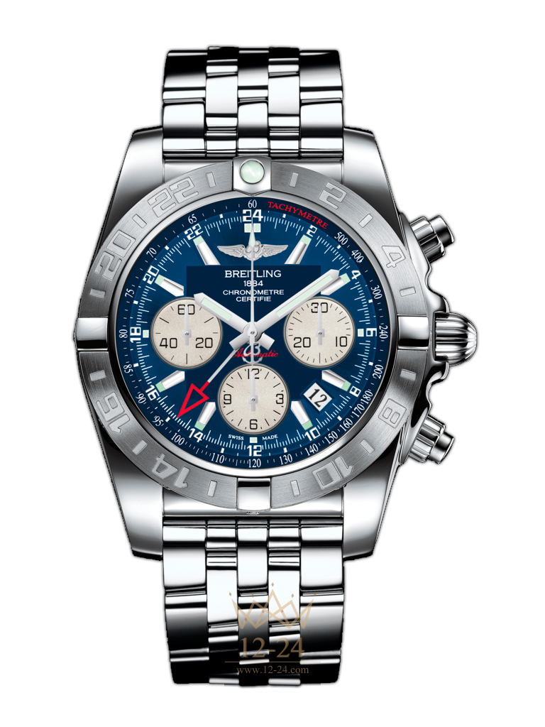 Представляя часы Chronomat 44 GMT, компания Breitling даёт путешественнику возможность с непревзойдённой лёгкостью и удобством пользоваться своим время-измерительным прибором. Их Владельцу нужно только вытянуть заводную головку и повернуть её вперёд или назад, чтобы перейти к тому или иному часовому поясу без потери точного положения минутной стрелки. Эта модель, снабжённая мануфактурным механизмом Breitling Caliber B04, является одним из немногих хронографов, где установлена такая удобная система перехода между двумя часовыми поясами. Марку также отличает вращающийся безель, предоставляющий возможность распознавания третьего часового пояса, с обозначениями 24 часов.