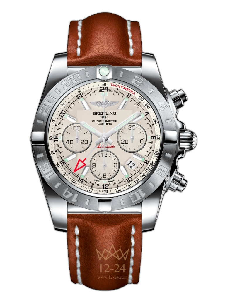 Представляя часы Chronomat 44 GMT, компания Breitling даёт путешественнику возможность с непревзойдённой лёгкостью и удобством пользоваться своим время-измерительным прибором. Их Владельцу нужно только вытянуть заводную головку и повернуть её вперёд или назад, чтобы перейти к тому или иному часовому поясу без потери точного положения минутной стрелки. Эта модель, снабжённая мануфактурным механизмом Breitling Caliber B04, является одним из немногих хронографов, где установлена такая удобная система перехода между двумя часовыми поясами. Марку также отличает вращающийся безель, предоставляющий возможность распознавания третьего часового пояса, с обозначениями 24 часов.