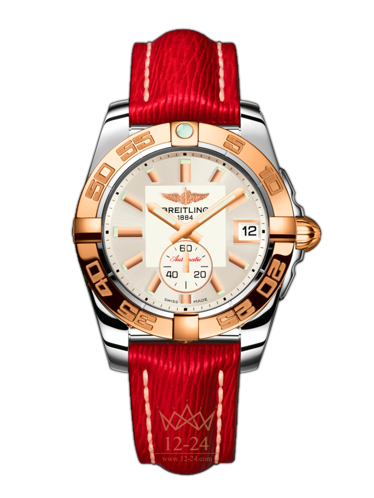 Женские швейцарские наручные часы с индикатором даты. Механизм – с автоматическим подзаводом на 27 рубиновых камнях. Запас хода до 42 часов. Прошедший сертификацию COSC. Корпус Breitling выполнен из стали и розового золота. Диаметр корпуса 36 мм, толщина 12.3 мм. Завинчивающаяся заводная головка. Циферблат жемчужного цвета. Секундная стрелка смещена на отдельный циферблат и располагается в позиции 6 часов. Стекло из сапфирового анти-бликового хрусталя - это гарантия предельной прочности в совокупности с максимальной читаемостью информации при разных обстоятельствах. Ремешок красного цвета, изготовлен из высококачественной натуральной кожи с надежной и удобной простой, классической застежкой.