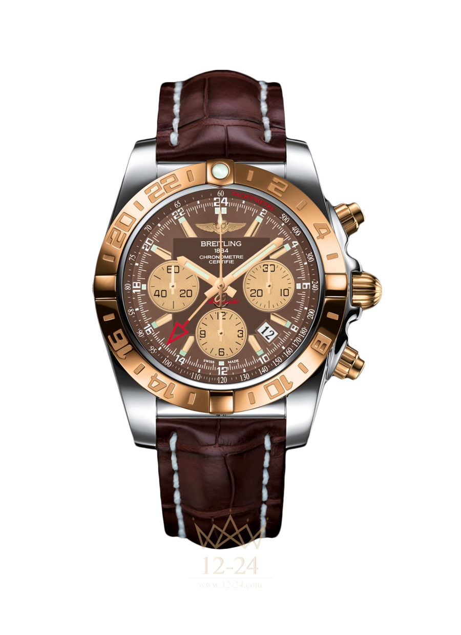 Breitling Chronomat GMT оснащены механизмом, который стоит на 37 камнях, имеет запас хода 70 часов и балансовую частоту 28 800 пк/час. Функциональность хронографа обусловлена индикацией часов, минут, секунд, даты, двойного времени, наличием тахиметра. Вращающийся в обе стороны безель помещен на корпус, изготовленный из нержавеющей стали с розовым золотом, водонепроницаемость новинки составляет 200 метров.