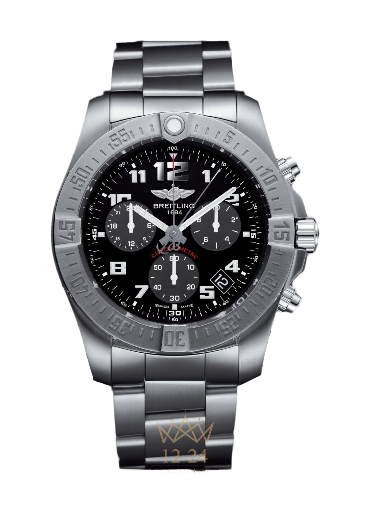 Оснащенный первым кварцевым механизмом с аналоговым дисплеем, разработанным Breitling и для Breitling, этот прочный и легкий титановый прибор отличается своей несравненной функциональностью и легкостью восприятия информации. Две центральные стрелки хронографа (секундная с красным концом, а минутная — с белым) служат для совершенно четкого определения времени. Их дополняет 24-часовой счетчик, расположенный на 9:30, который предназначен для миссий, длящихся целый день. Другим ключевым преимуществом с точки зрения эффективности является тот факт, что, нажав кнопку, расположенную у 4 часов, пользователь может остановить стрелки хронографа в любой момент, чтобы замерить промежуточное время.
