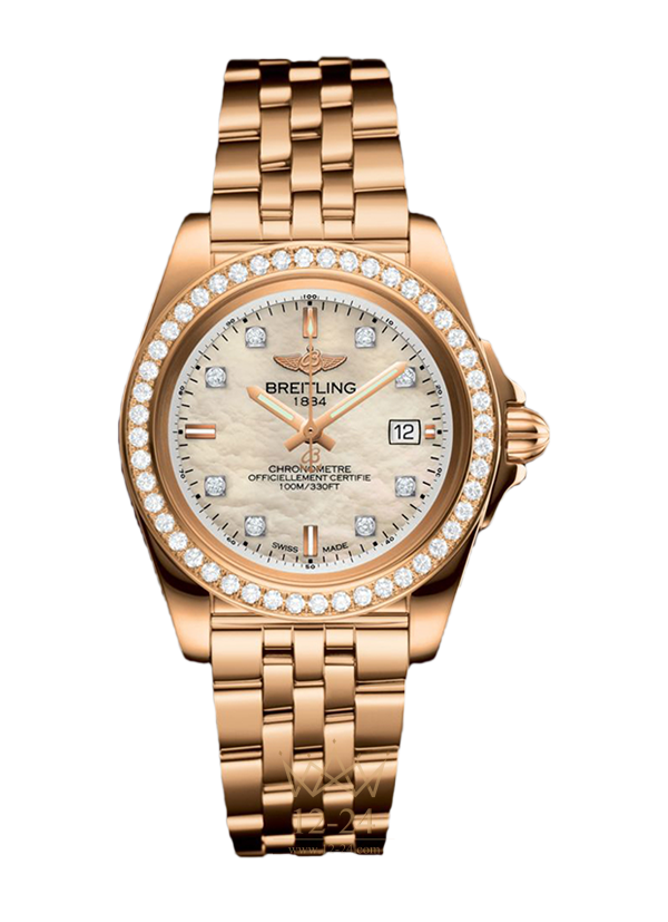 Breitling соединяет стиль с высокими характеристиками в узнаваемой женской модели, представленной во множестве вариантов. С безелем из вольфрам-карбида, ультра-прочного, устойчивого к царапинам высокотехнологичного материала. С украшенным бриллиантами безелем. С люминесцентными метками часов или бриллиантовыми метками часов. В корпусе из стали, стали и золота или полностью золотой версии. Не забудьте про ассортимент из четырех циферблатов (натурального перламутра, синего, черного или цвета шампанского) и разные виды ремешков/браслетов. В прочный корпус, защищенный от воды до 100 м (330 футов), заключен механизм SuperQuartz™, в десять раз более точный, чем стандартный кварцевый. Стильная интерпретация великих спортивных часов.