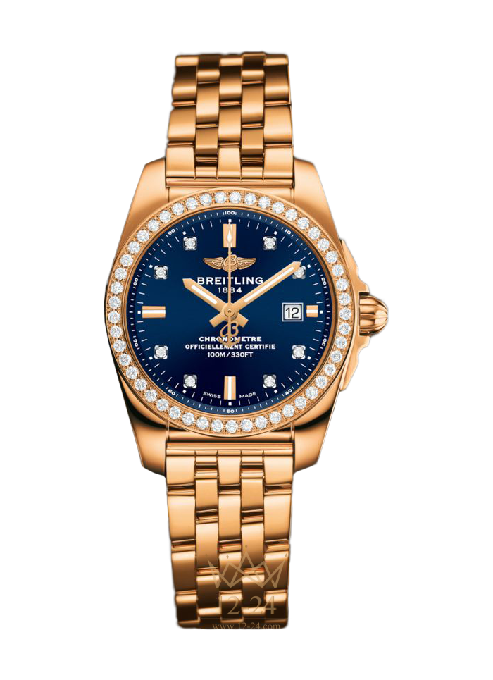 Созданные для женщин, чьё представление об элегантности неотделимо от высоких технических характеристик, часы Galactic 29 отличаются утонченными, изящными деталями, в частности, перламутровым циферблатом, безелем, инкрустированным драгоценными камнями, часовыми отметками из бриллиантов или из розового золота. Стальные модели обладают карбидо-вольфрамовым безелем и сохраняют водонепроницаемость на глубине до 100 м (330 футов), что является редкой особенностью часов для женщин. Официально сертифицированный хронометр COSC, механизм обеспечивает степень точности, в десять раз превышающую точность стандартного кварцевого механизма. Breitling дарит женщинам время.