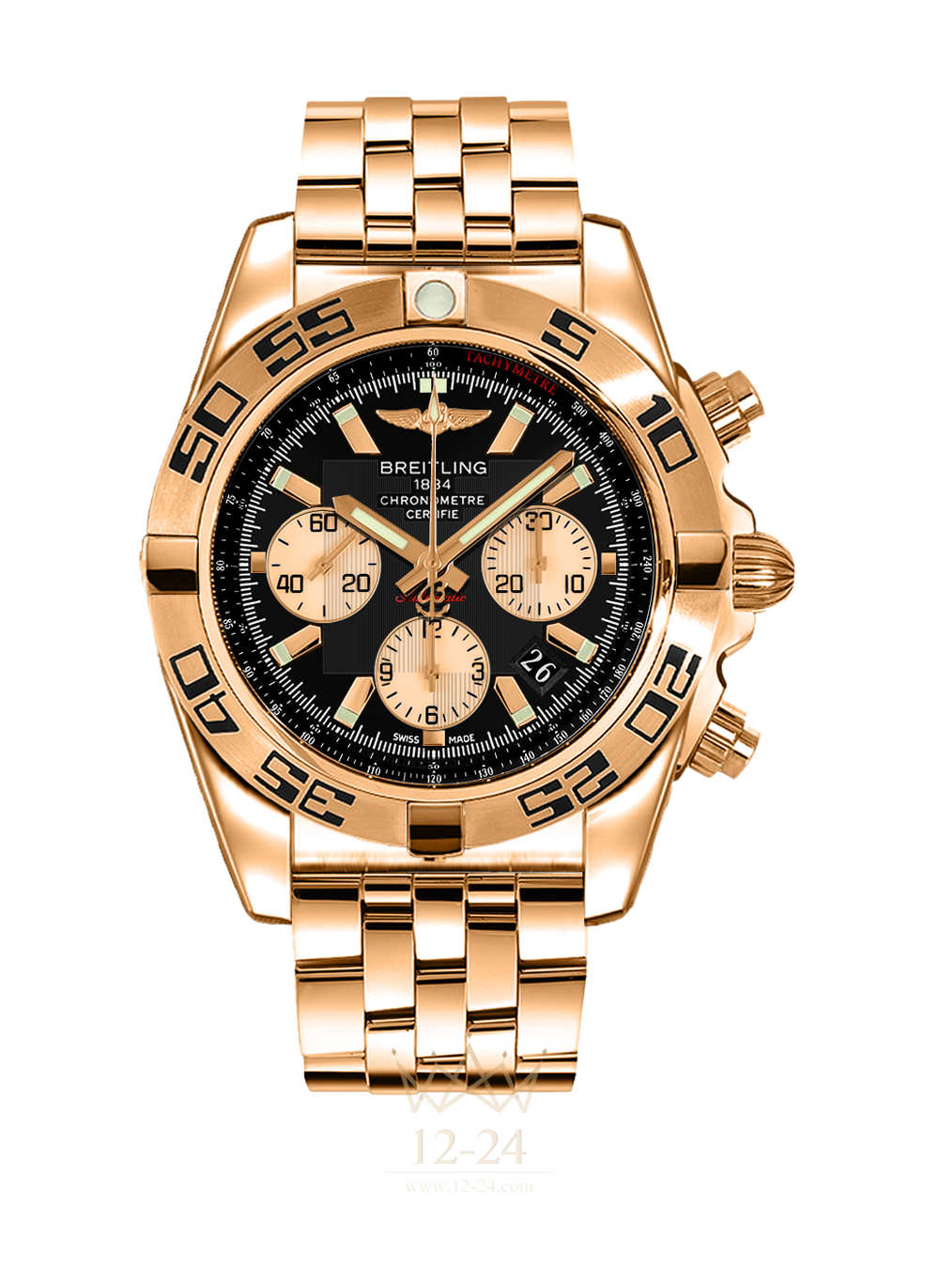Ведущая модель из коллекций фирмы Breitling, Chronomat 44 несёт в себе отпечаток целой вселенной, где царят превосходное качество, спортивные достижения и стремление превзойти границы личных возможностей. Прочный корпус, в котором размещён мануфактурный калибр Breitling 01 сохраняет водонепроницаемость на глубине до 500 м (1650 футов) — достойные часы для лучшего ныряльщика. Этот хронограф, обладающий мощным и уникальным стилем, настоящий инструмент авиатора, выпускается в четырёх вариантах: полностью из стали, из стали с безелем, имеющим четыре массивных золотых метки, из стали с золотым безелем и полностью из золота, к нему предлагается большой выбор циферблатов, ремешков и браслетов. Это хронограф для всех пилотов.