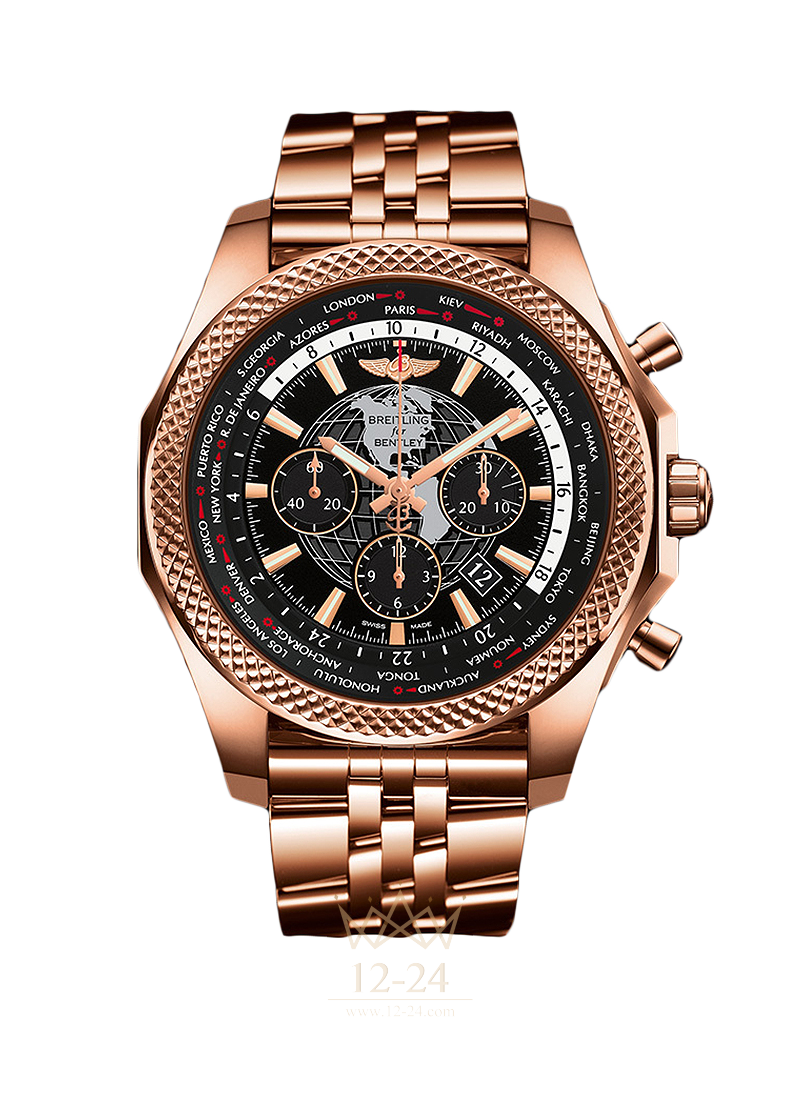 Для тех, кто любит путешествовать в серии Breitling for Bentley разработана модель Bentley B05 Unitime, хронограф с мировым временем, оснащенный инновационным мануфактурный механизмом Breitling, закрепленным патентом. Благодаря двойной дисковой системе данная модель отличается удобством в обращении, а также позволяет видеть время во всех 24 зонах. При смене часового пояса, пользователю нужно только нажать на кнопку и провернуть ее вперед или назад с шагом в 1 час, что позволит установить точное местное время. Безель на 24 города позволяет высчитать летнее время или декретное летнее время (DST). Циферблат оснащен штампованным или вычеканным узором (в черной, белой или синей оправе) в виде искусно сделанного глобуса, что соответствует духу путешествий. Официально сертифицированный высококачественный хронограф принят во всем мире. Он управляется оригинальным ротором в виде обода колеса, который виден через прозрачный корпус.