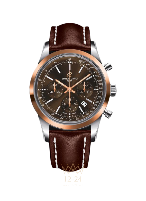 Модель Transocean Chronograph воспроизводит в чистом виде дизайн хронографов 1950-60-х годов в решительно современном стиле. Изящный, сдержанный корпус заключает в себе «высокопроизводительный мотор» в виде часового механизма Caliber 01, который полностью разработан и изготовлен в цехах компании Breitling. Циферблат является образцом четкости и читаемости, обладая такими утонченными деталями, как нанесенные часовые деления, слегка утопленные счетчики с концентрическими кругами, а также вариант заглавной буквы «В», на протяжении многих лет служившей олицетворением бренда, которая выполнена из 18-каратного золота. Роскошь и престиж самых приятных длительных перелетов.