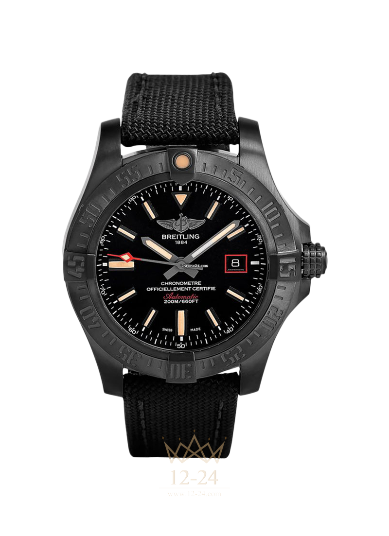 Обладающая высочайшими характеристиками, точная и функциональная модель Avenger Blackbird 44 воплощает в себе квинтэссенцию духа Breitling. Ее девиз: «мощь в действии». Легкий и прочный титановый корпус несет на себе крайне прочное черное покрытие на углеродной основе, что придает часам «шпионский» вид, подчеркнутый матовой отделкой. Циферблат выделяется своей исключительной легкостью восприятия информации, а вращающийся в одном направлении безель с выступами обеспечивает очень точный отсчет часов полета или времени погружения под воду. Эта однозначная направленность на рекордные полетные достижения также отражается в антрацитовом ремешке Military военного стиля из ультра-прочной высокотехнологичной ткани.