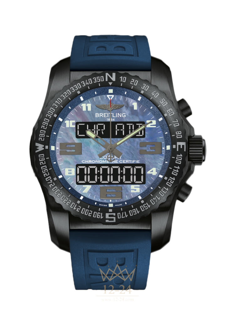 Идеальный инструмент для пилота, многофункциональный электронный хронограф отличается титановым корпусом, который оснащен эксклюзивным электронным калибром Breitling B50: специально разработанным для авиации механизмом SuperQuartz™ с аналоговым и цифровым дисплеями. В число его инноваций также входит облегчающий восприятие информации дисплей, высочайшая простота в обращении и широкий набор функций. В версии «Night Mission» часы Cockpit B50 выполнены в черном титановом корпусе с углеродным напылением с высокой устойчивостью, а также с резиновым ремешком. Исключительный дизайн инструмента высокого качества.