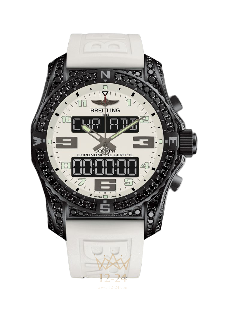 Идеальный инструмент для пилота, многофункциональный электронный хронограф отличается титановым корпусом, который оснащен эксклюзивным электронным калибром Breitling B50: специально разработанным для авиации механизмом SuperQuartz™ с аналоговым и цифровым дисплеями. В число его инноваций также входит облегчающий восприятие информации дисплей, высочайшая простота в обращении и широкий набор функций. В версии «Night Mission» часы Cockpit B50 выполнены в черном титановом корпусе с углеродным напылением с высокой устойчивостью, а также с резиновым ремешком. Исключительный дизайн инструмента высокого качества.