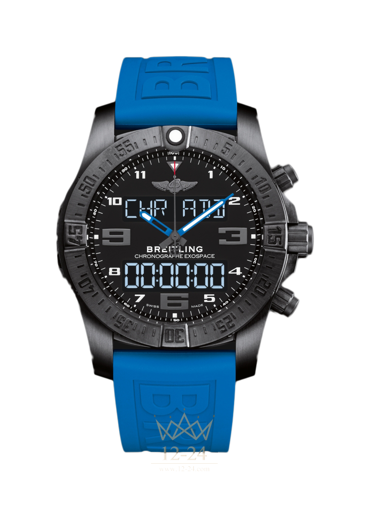 Авангардный, подключаемый к цифровым устройствам хронограф Exospace B55 оснащен эксклюзивным механизмом SuperQuartz™, способным выполнять ряд уникальных функций, разработанных специально для пилотов. Он выделяется своей новой философией, ставящей смартфон на службу часам, чтобы усилить их функциональность. Таким образом, пользователь получает оптимальное удобство внесения определенных корректировок с помощью телефона и, наоборот, может загрузить результаты определенных измерений в смартфон, а также имеет возможность получать уведомления. Этот устремленный в будущее прибор также отличается своим решительным техничным дизайном, который отличается титановым корпусом и резиновым ремешком. Это хронограф нового поколения, подключаемый к цифровым устройствам.