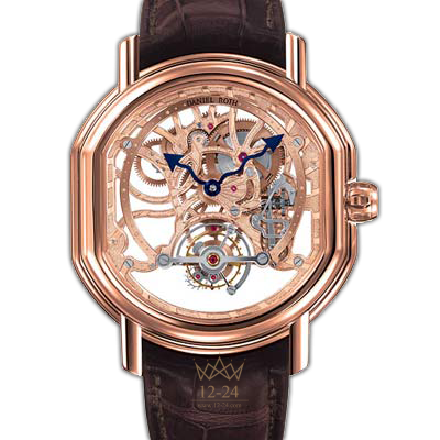 Выполненный из розового золота корпус довольно тяжел, но прозрачность центральной части придает часам воздушность, сочетая, таким образом, в себе две абсолютные противоположности. Изумительная по утонченности дизайна модель часов Daniel Roth Tourbillon Lumière не имеет себе равных.