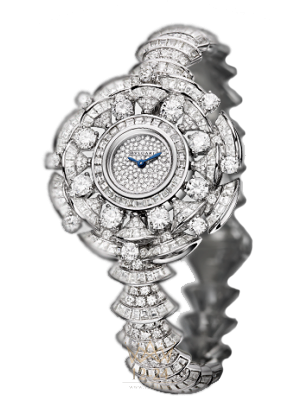 Новые часы Bulgari Diva выпущены в 39-миллиметровом корпусе и оснащены кварцевым механизмом, отвечающим за работу часовой и минутной стрелок. Эта модель из белого золота 750-й пробы и декорирована бриллиантами круглой и багетной огранок.