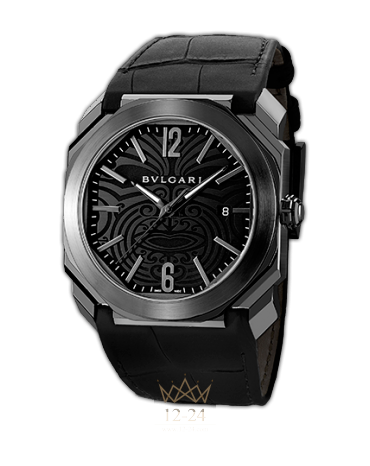 Разработанные в классическом и изысканном стиле часы Octo Solotempo, выпущенные в 2012 году, прошли череду значительных эстетических преобразований в создании Octo Solotempo All Blacks. Весьма сложный корпус из нержавеющей стали размером 41 мм х 10.55 мм с отшлифованной центральной частью и круглым безелем теперь с покрытием DLC. Совершить этот деликатный процесс – настоящее достижение по отношению к столь сложному корпусу с его многочисленными гранеными частями с острыми краями.