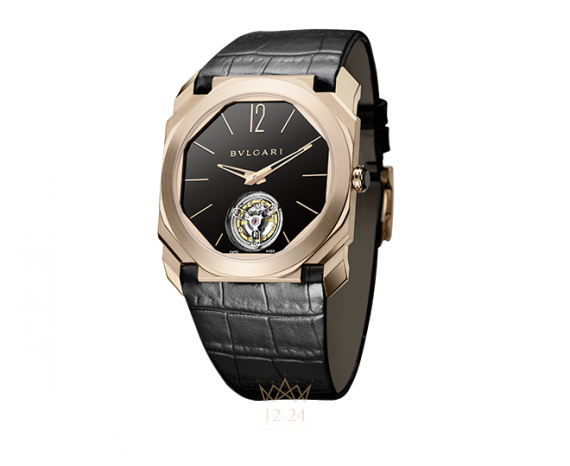 Механизм с ручным заводом, парящий турбийон и специальный узел с шарикоподшипником. Самый тонкий турбийон в мире, калибр BVL 268 (толщина – 1,95 мм) украшен ручной отделкой côte de Genève. Запас хода – 52 часа. 40-миллиметровый корпус из розового золота 750 пробы с прозрачной задней крышкой. Коронка из розового золота 750 пробы украшена вставкой из черной керамики. Диаметр – 40 мм, толщина – 5,00 мм. Черный лакированный циферблат с отверстием над клетью турбийона. Черный ремешок из крокодиловой кожи с застежкой-пряжкой из розового золота 750 пробы.