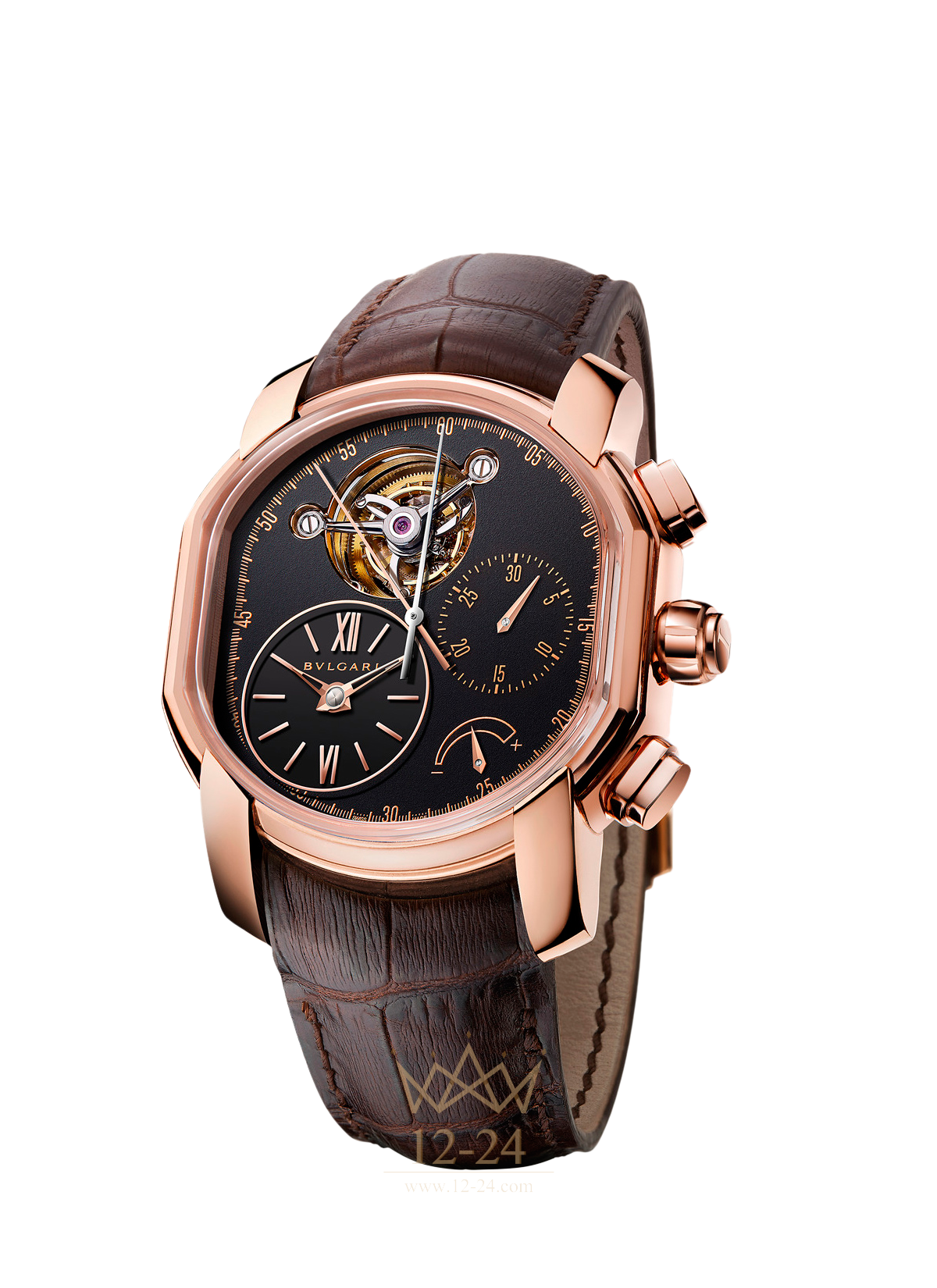 Механизм с ручным заводом, турбийон с функцией сплит-хронографа, смещенный от центра индикатор часов и минут, хронограф с 59-секундным и 29-минутным счетчиком, индикатор запаса хода. Калибр DR 3300, ручная отделка perlage и «Côte de Genève», скошенные кромки. Запас хода — 48 часов.
